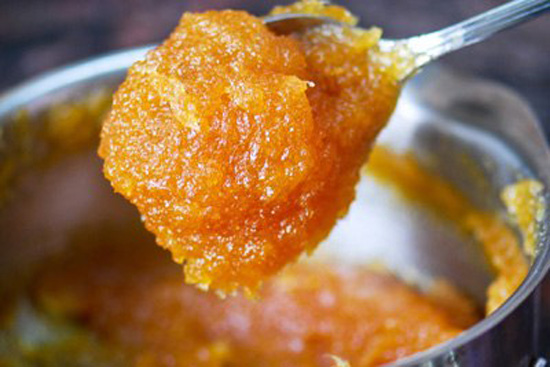– Cho toàn bộ dứa đã xay nhuyễn vào nồi, thêm đường và quế vào. Đun trên lửa nhỏ – trung bình đến khi mứt dưa sệt keo lại là đạt. Trong quá trình đun, thỉnh thoảng mở nắp vung khuấy đều để tránh tình trạng bén nồi. Tắt bếp và để cho dứa nguội hẳn.
