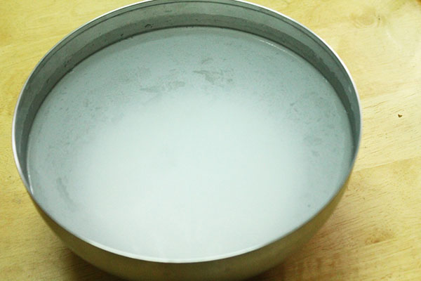 Hòa tan 50g vôi vào 500ml nước lọc, khuấy đều tay sau đó để im trong vài tiếng đồng hồ. Đến khi các hạt vôi lắng xuống đáy, bạn từ từ gạn lấy phần nước trong ở bên trên mặt, đổ bỏ phần cặn vôi dưới đáy. Phần nước này gọi là “nước vôi trong” – là một nguyên liệu không thể thiếu để làm món bánh đúc.