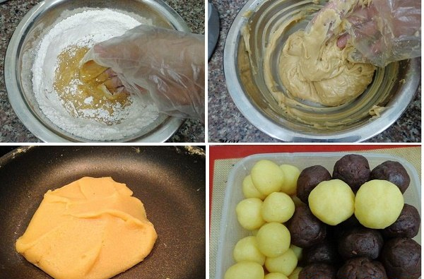Đã có vỏ bánh và nhân bánh đầy đủ, bạn tiến hành cách làm bánh trung thu nướng nhân đậu xanh trứng muối nhé