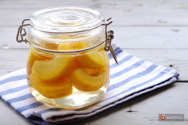 Nếu muốn đào được bảo quản lâu hơn, bạn có thể cho cả hộp thành phẩm đào ngâm vào nước sôi chần trong tầm khoảng 10 phút. Sau tầm 2 ngày là có thể dùng được rồi.