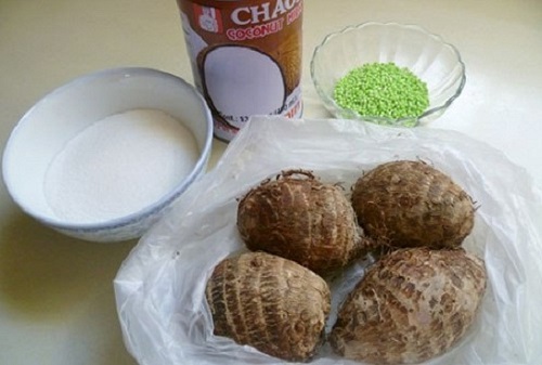 Nguyên liệu nấu chè khoai sọ bột báng nước cốt dừa