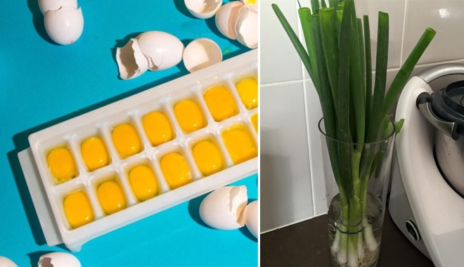 Đôi khi chúng ta không thể sử dụng hết số trứng trong khi còn tươi hay chỉ sử dụng lòng trắng hoặc lòng đỏ. Vậy nên hãy đập trứng vào trong khay đá và bỏ vào tủ lạnh, thêm một chút muối hoặc đường để giữ kết cấu của quả trứng.