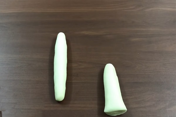 Bước 4: Lấy bột ra, dùng cây cán bột để cán mỏng khối bột lại, sau đó dùng tay cuộn khối bột lại thành hình trụ.