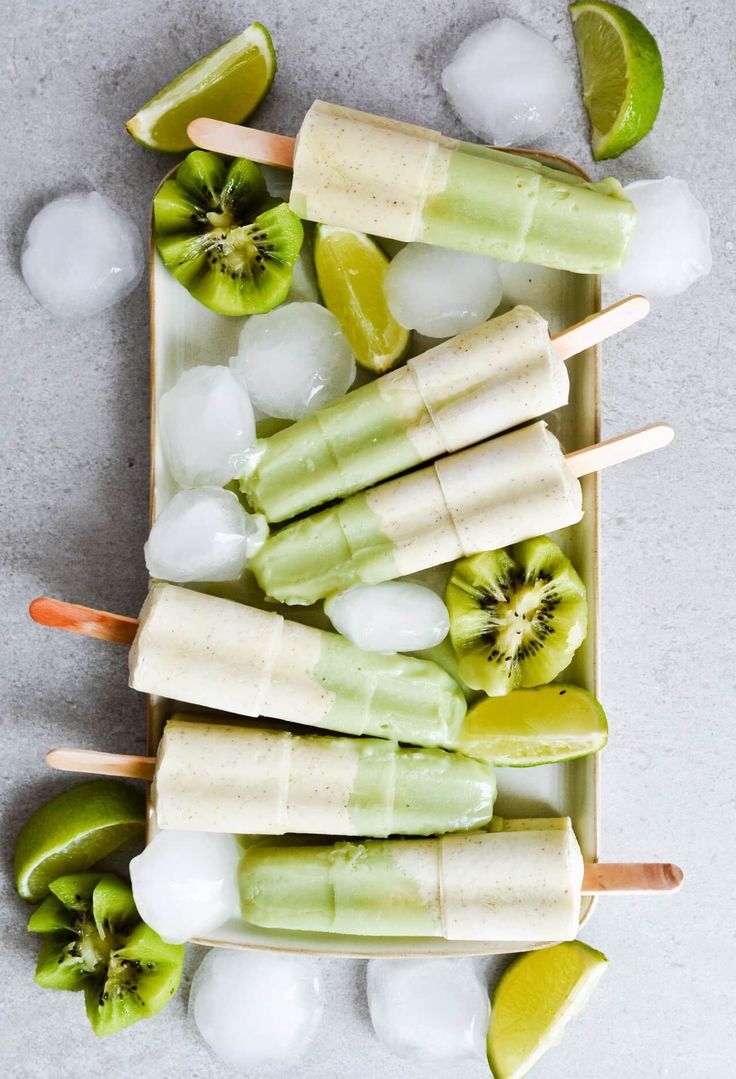– Rót nước cốt chanh vào khuôn kem que và thả một vài miếng kiwi vào cùng.