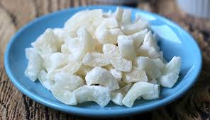 Nguyên liệu làm mứt dừa khô: Dừa gọt sẵn (khoảng 2 đến 3 quả dừa khô), đường vàng.