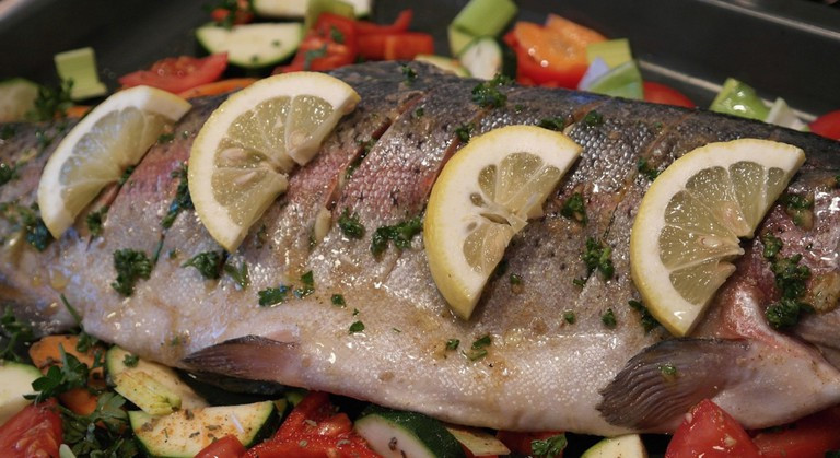Pa Mak Now: Là đất nước không có biển, vì thế, cá nước ngọt là thực phẩm đặc sắc trong văn hóa ẩm thực Lào. Đặc biệt, Pa Mak Now là món cá được hấp bằng các loại trái cây có múi như cam, chanh nên sẽ có vị thơm rất đặc trưng. Món ăn này phổ biến với người Lào, xuất hiện cả trong những quán ăn bình dân lẫn các nhà hàng sang trọng. Ảnh: Theculturetrip.