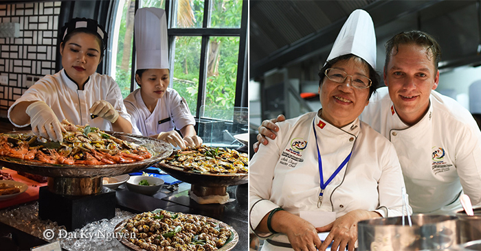 Để chuẩn bị ẩm thực cho ngày diễn ra Hội nghị cấp cao APEC 2017 cùng lúc tiếp đón 21 nhà lãnh đạo cấp cao, nghệ nhân ưu tú tri thức ẩm thực dân gian Ánh Tuyết (áo xanh) được mời tư vấn ẩm thực Việt cho hệ thống khách sạn, nhà hàng Khu nghỉ dưỡng InterContinental Đà Nẵng.