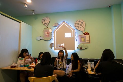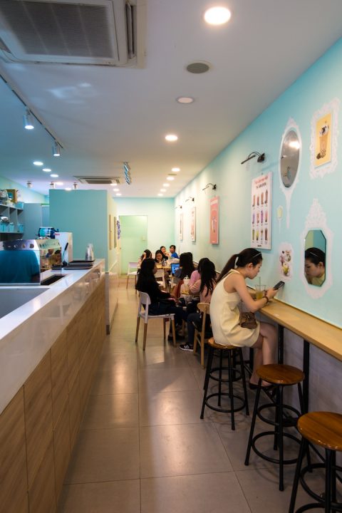 Quán nổi bật trên con đường vốn tấp nập nhiều quán ăn nổi tiếng ngay trung tâm quận 1, đối diện tòa nhà Bitexco nhờ màu sắc trang trí dễ thương dù không gian hơi nhỏ.