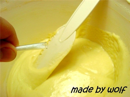 Qua đến phần lòng đỏ, chúng ta cũng đánh với tốc độ lớn nhất, đến khi trứng bắt đầu ngã sang màu vàng nhạt hơn và hơi sánh lại là dừng – đánh khoảng 5p-7p. Sau đó chúng ta cho phần lòng trắng trứng đã đánh vào và trộn đều