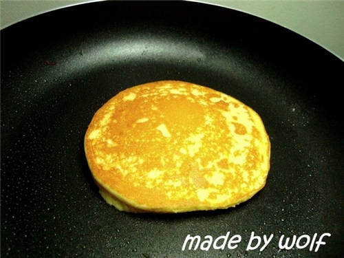 Sau 3p-4p bánh sẽ vàng mặt, chúng dùng sạn lật bánh lại, để thêm 2p-3p nữa thì bánh sẽ chín hoàn toàn