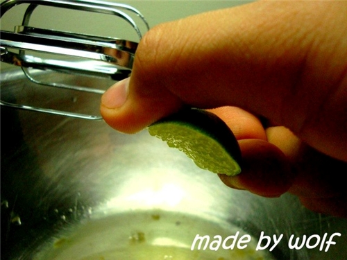 Đầu tiên chúng ta tách lòng đỏ và lòng trắng của 3 cái trứng ra, mỗi loại 1 thau riêng. Phần lòng trắng chúng ta thêm vào 20ml nước cốt chanh ( khoảng 3 miếng vừa ).