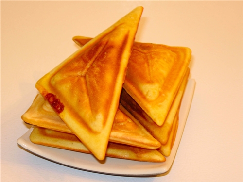 Cho một lớp bột vào khoảng ½ khuôn bánh, nướng trong vòng 3 – 4 phút. Sau đó mở ra, cho nhân vào, pate, chà bông, xúc xích vào giữa, đổ thêm 1 lớp bột mỏng lên trên. Nướng thêm khoảng 10 phút cho bánh chín.