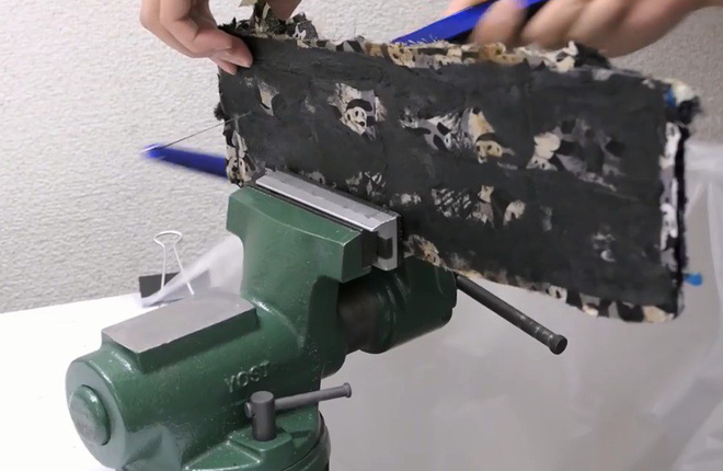 Những công đoạn như dùng cưa để cắt tạo hình cho con dao, hay dùng giấy nhám để mài dao cũng cho thấy sự tỉ mỉ và chuyên nghiệp rất cao của người tạo ra nó.
