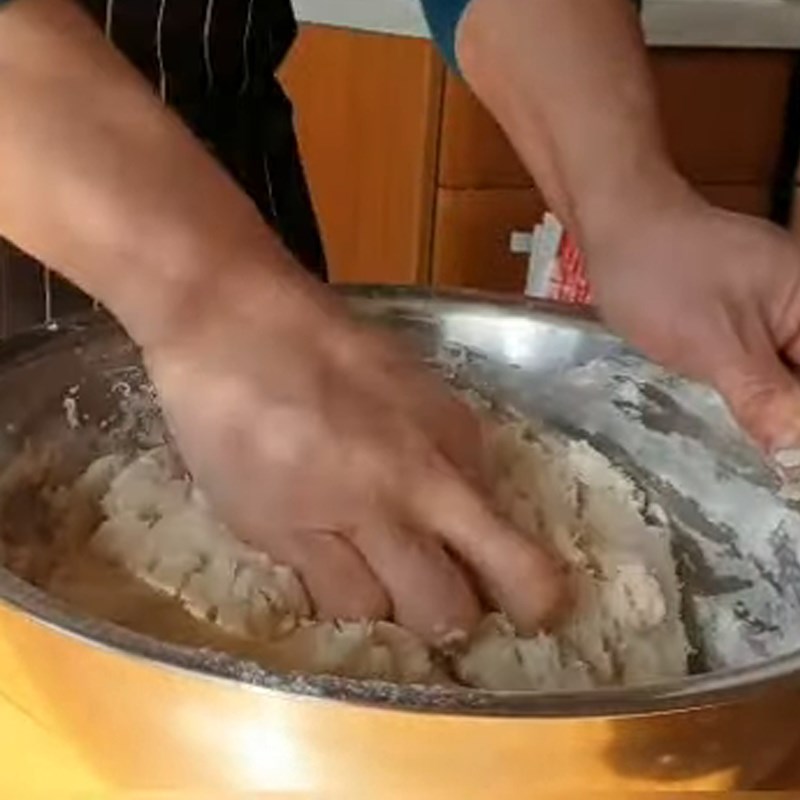 Bước 2: Lấy bột mì cho vào thau sau khi đã trộn với muối, đổ thêm chén bột cái đã chuẩn bị từ trước. Sau đó cho nước men đã hoàn thành ở bước một vào và tiến hành nhào bột cho thật kỹ. Đến khi nào nó trở nên mịn màng và không còn nổi hạt thì mang đi ủ trong vòng 4 tiếng.