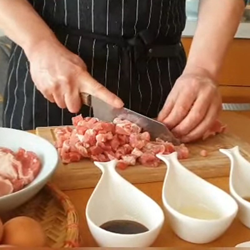 - Thịt nạc vai rửa sạch, cắt nhỏ rồi xay nhuyễn.