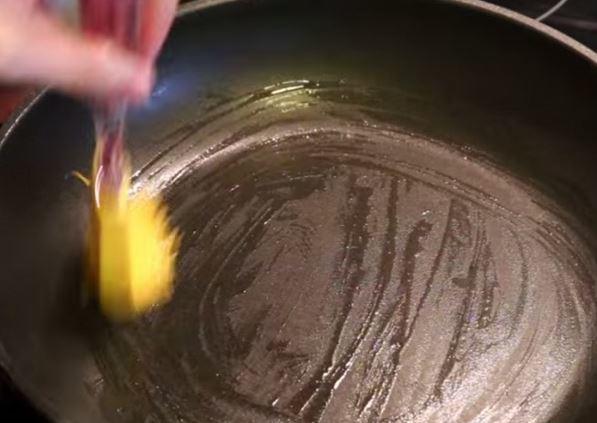 – Để lửa ở mức độ vừa (không quá to hay không quá nhỏ). Chuẩn bị chảo chống dính chuẩn, dùng chổi phết dầu ăn quanh chảo, hoặc dùng bông nhúng dầu, lấy đũa gắp bông quết đều dầu quanh chảo.