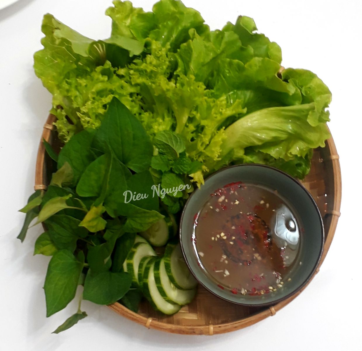 - Rau sống ăn kèm: xà lách, dưa leo, diếp cá, rau húng lũi…