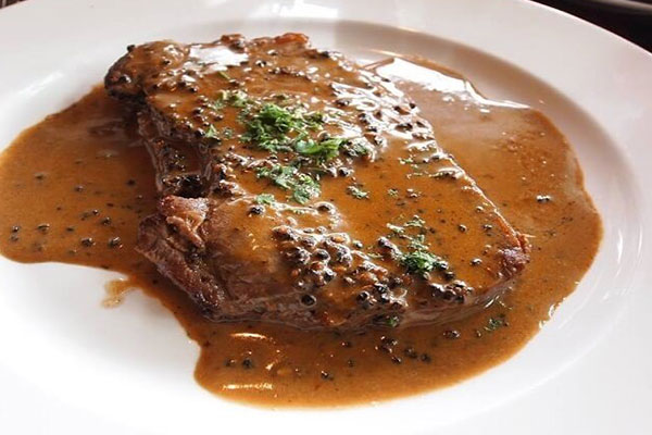 Bò bít tết sốt tiêu đen là món ăn của phương Tây có xuất xứ từ Mỹ, đặc trưng của món ăn là miếng thịt bò to, mềm, khi thái ra vẫn còn màu hồng chín tái, với hương vị thơm ngon, thịt ngọt ăn kèm với sốt tiêu đen. Khi ăn nhâm nhi cùng chút salad hay khoai tây chiên.