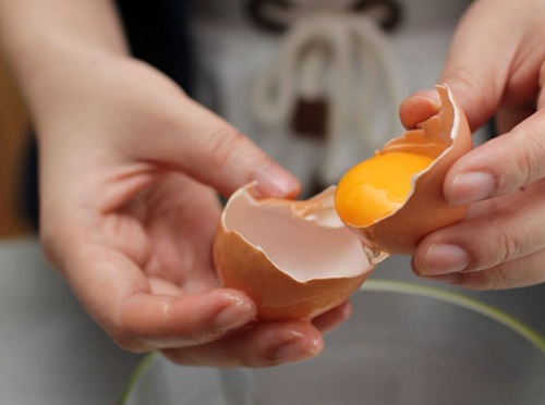 1. Trứng gà sau khi mua về, bạn tách riêng lòng trắng và lòng đỏ ra 2 cốc khác nhau.