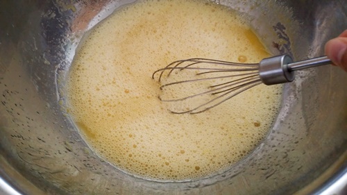 2. Ở cốc đựng lòng đỏ, bạn cho thêm vài giọt mật ong. Sau đó dùng máy đánh trứng đánh đều cho lòng đỏ bông lên, đến khi ngửi thấy mùi thơm như mùi của bánh là được. Chú ý đánh thật nhanh tay nhé!