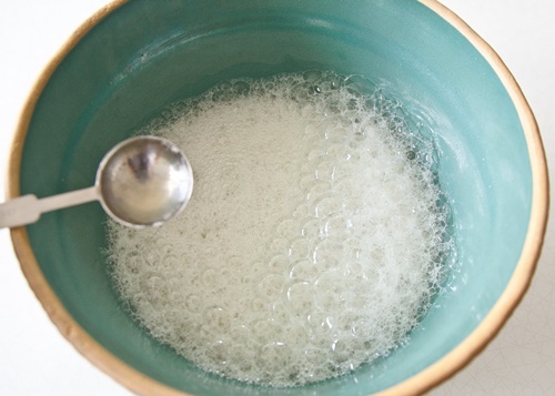 3. Sau khi đánh bông lòng đỏ, bạn rửa sạch dụng cụ đánh trứng đi. Cho thêm một chút đường, vài giọt mật ong vào cốc đựng lòng trắng trứng rồi đánh đều cho thật kỹ. Đến khi lòng trắng gà mịn như bông, có mùi thơm ngậy đặc trưng thì dừng lại.