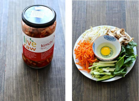 Cách làm cơm trộn Hàn Quốc Bibimbap trong 30 phút với đủ hương vị khi kết hợp một vòng món ăn kèm ngon từ kim chi, bí ngòi, giá mầm, cà rốt, cải bó xôi, nấm, thịt bò đến trứng.