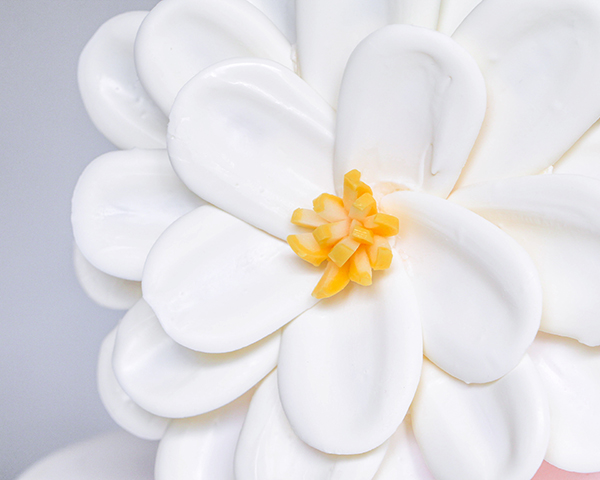 – Đối với tầng cánh hoa thứ 3, bạn cần gắn thêm butter cream ở phía sau từng cánh hoa để tạo sự kết dính chắc chắc và di chuyển chúng về phía sau của tầng hoa thứ hai, so le với các cánh hoa của tầng hai.