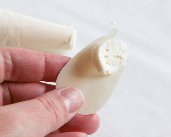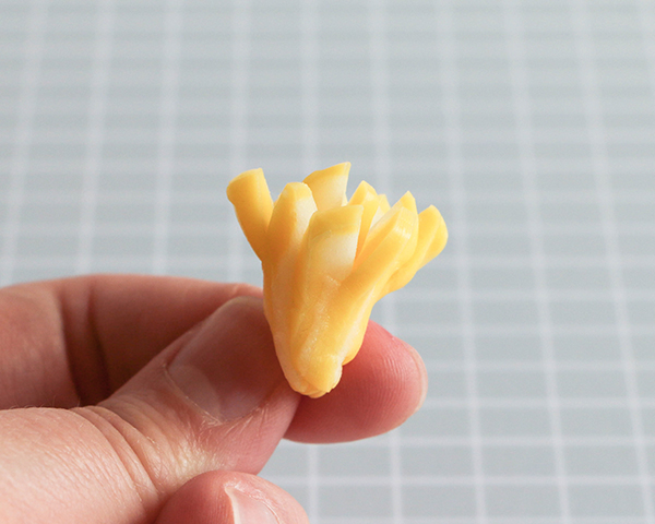 – Cắt những viên kẹo đã chuẩn bị thành những lát mỏng, sau đó lại cắt đôi chiều dài của chúng ra. Tập hợp chúng tại với nhau và gắn ở phía đáy lại tạo thành một khóm nhỏ.