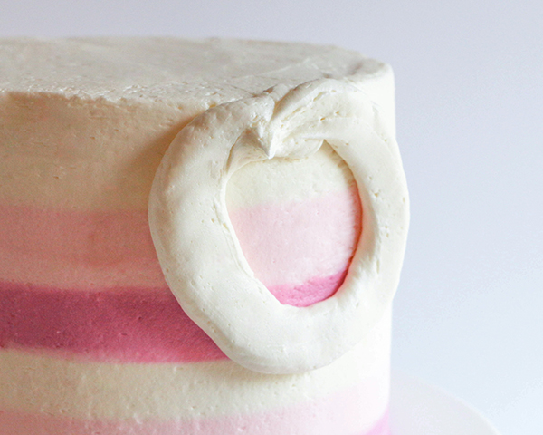 – Dùng buttercream vẽ một đường tròn đường kính khoảng 3inch bên cạnh của chiếc bánh, phần trên sát với cạnh trên cùng của chiếc bánh.