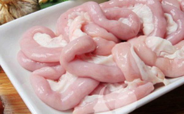 – Lòng lợn non sau khi lộn trái, bóp muối 3 lần, rửa sạch thì bóp với 100ml rượu và thổi phồng, buộc chặt hai đầu để định hình trong 1 tiếng.