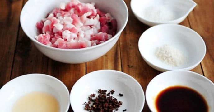– Thịt ba chỉ lọc bỏ bì, rửa sạch rồi tráng qua với 100ml rượu trắng. Sau đó thái miếng nhỏ, mỏng hoặc thái hạt lựu.