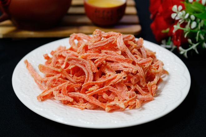 – Bước 1: Cà rốt mua về rửa sạch rồi cắt bỏ đầu đuôi, nạo sạch vỏ sau đó dùng dao thái thành dạng sợi không quá to cũng không quá nhỏ là vừa. Nếu bạn dùng nạo sợi thì nên dùng loại lỗ to để khi sên mứt không bị nát nhé.