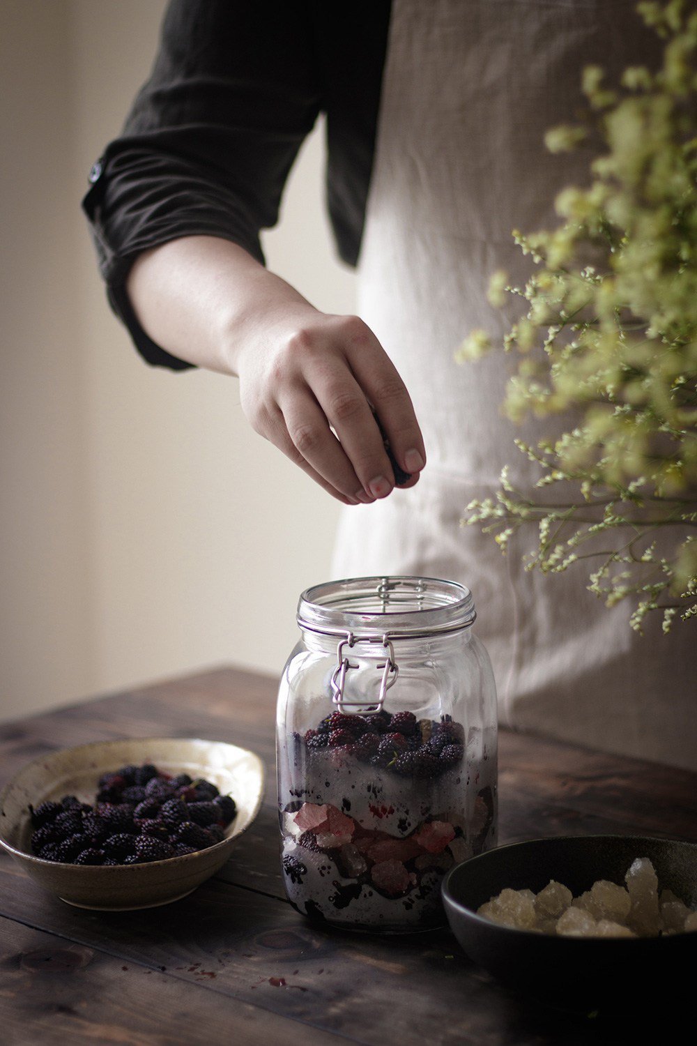 Cho vào đáy lọ thủy tinh một lớp dâu, tiếp đến là một lớp đường phèn. Cứ như vậy tới khi hết dâu và đường. Bạn chú ý để lớp trên cùng là đường nhé. Việc này sẽ ngăn ngừa việc khi ngâm dâu có hiện tượng nổi váng. Đem lọ vào chỗ mát để và tránh ánh sáng trực tiếp.