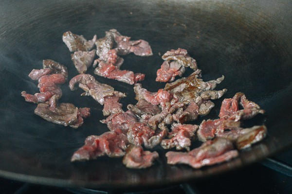 Cho chút dầu vào chảo, khi dầu nóng cho thịt vào đảo sơ. Thịt chín tái thì trút ra đĩa.
