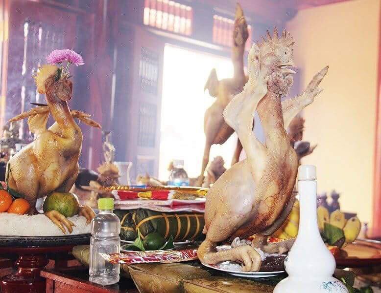 Gà ngậm hoa với tư thế trên đĩa cổ điển xưa rồi, nay gà cúng rằm phải tỏa sáng như trong bộ ảnh dưới đây.