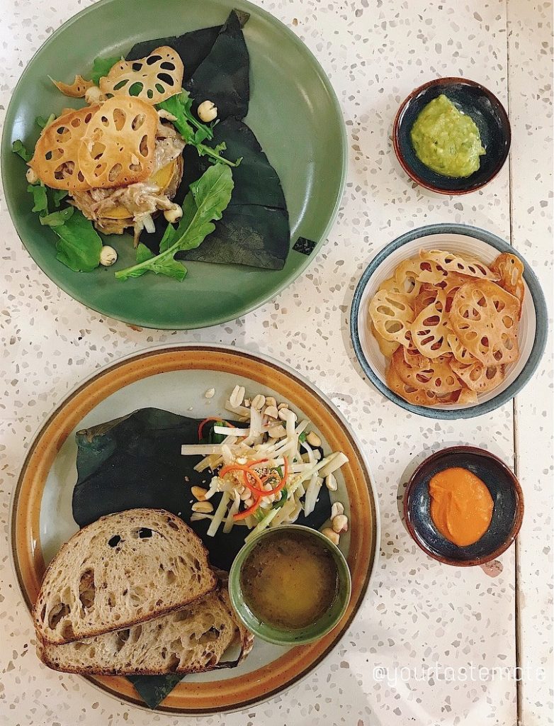 Nguyên liệu sen, thức quà ý nghĩa của Hà Nội khiến không ít du khách nước ngoài ấn tượng với những món ăn lạ miệng, chế biến tinh tế. Senté luôn có thực đơn chay và mặn phục vụ mọi nhu cầu của thực khách. Những món chay bạn nên thử khi đến nhà hàng là mì xào Singapore, nem chiên, gỏi ngó sen và những thức uống thanh mát. Ảnh: Yourtastemate, meillee.