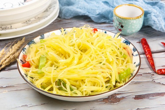 Chúng ta có thể cho khoai tây đã bào sợi vào thau nước lạnh, ngâm khoảng 10 phút rồi rửa sạch để hết tinh bột trên bề mặt và lau khô nước trên bề mặt. Khi chiên miếng khoai tây theo cách này không những không bị dính mà còn giòn tan trong miệng.