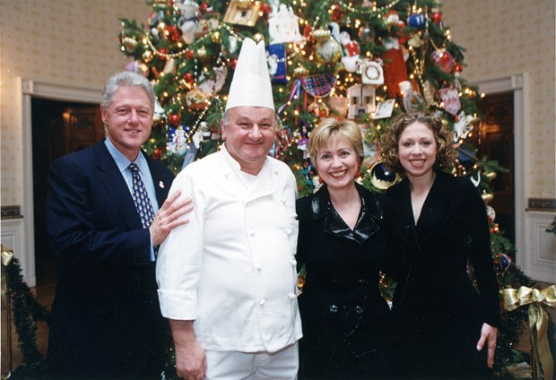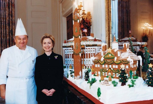 Trong những dịp đông đúc như thế, món tráng miệng thường được Roland Mesnier ưa chuộng là bánh shortcake dâu tây nướng trong khay to, dùng với kem tươi và kem lạnh. Để phục vụ cho bữa tiệc ngày 31-12-1999, Roland Mesnier đã không rời chỗ làm một bước cho tới tận 7h sáng hôm sau. Ông làm việc liên tục trong 16 tiếng đồng hồ, chỉ nghỉ 20 phút khi ăn, và ngay cả khi đó ông cũng không dám đặt mông ngồi xuống. Đôi chân ông tưởng chừng tê liệt và “nhà Clinton suýt thì giết tôi chết luôn”. Để dễ bề so sánh, trong suốt nhiệm kỳ của mình, nhà Clinton tổ chức tất cả 29 buổi lễ cấp quốc gia, so với 6 buổi của nhà Bush!