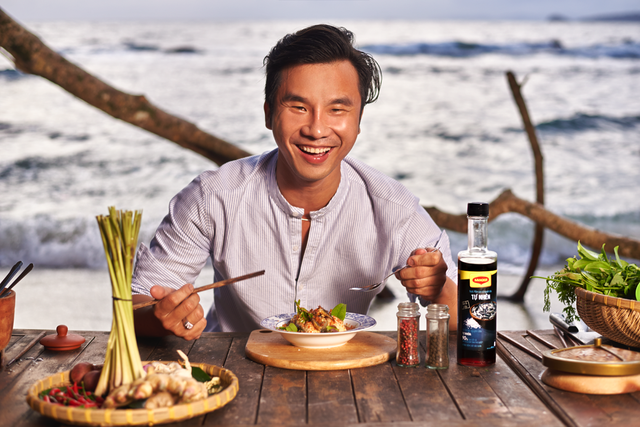 “Các giá trị dinh dưỡng trong của con cá cơm than được cô đọng trong nước mắm Maggi, đây sẽ là người bạn đồng hành của đặc biệt của tôi trong việc nấu ăn”, anh nói.