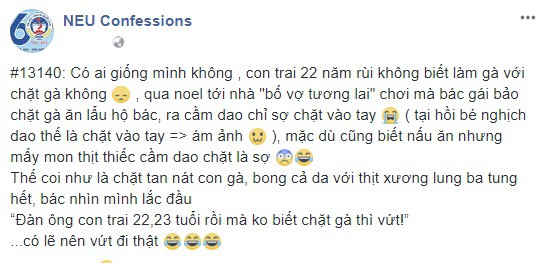 “Chặt gà thì chặt được chứ cắt tiết gà thì chịu. Mình không tài nào xuống tay được khi mắt con vật đó nó cứ nhìn chằm chằm vào mặt mình, một cảm giác khó tả đến lạnh sống lưng. Lần đầu tiên cắt tiết gà, mình buông cả tay làm nó chạy, hai mẹ con đuổi gà quanh vườn đêm giao thừa“, tài khoản Đình Đạt chia sẻ.