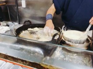 Nam đầu bếp nhúng tay trực tiếp vào chảo dầu sôi để rán hết chiếc