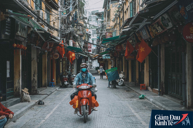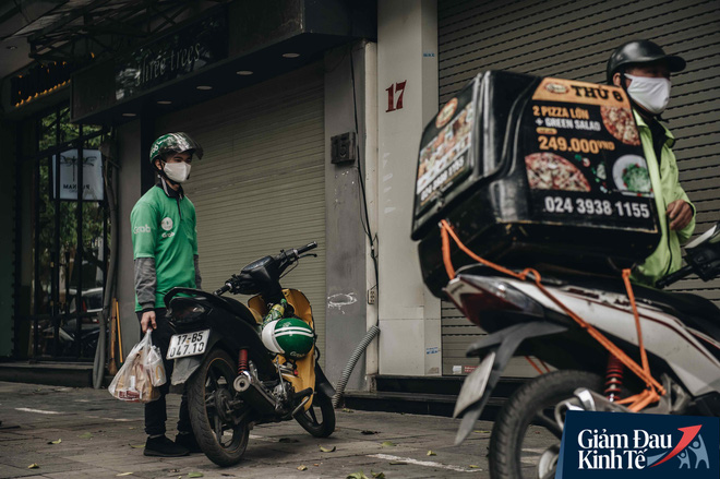 Trái với cảnh đường phố Hà Nội vắng tanh là một “cuộc sống khác”: ở nhiều hàng quán vẫn tấp nập cảnh shipper đi giao đồ ăn
