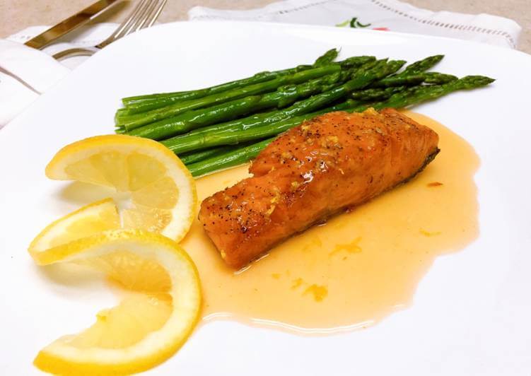 Cách làm cá hồi áp chảo sốt tiêu chanh