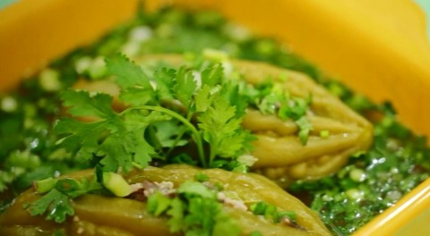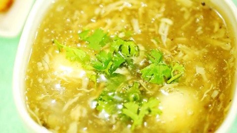 - Múc súp cua ra chén, thêm vào vài giọt dầu mè, hành lá, ngò rí, tiêu lên, dùng nóng.