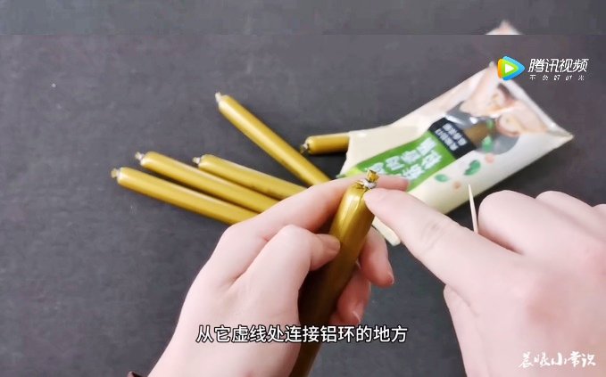Rất may, có một mẹo đơn giản ai cũng có thể dễ dàng bóc xúc xích dù ở bất cứ đâu, chỉ cần với một dụng cụ đơn giản là chiếc tăm nhọn hai đầu. Và vị trí để bóc chính là ở ngay dưới hai chiếc vòng nhôm, chỗ mà nhiều người cho rằng khó bóc nhất.