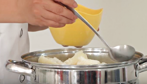 - Sau khi khoai mì vừa chín, vớt ra để ráo.