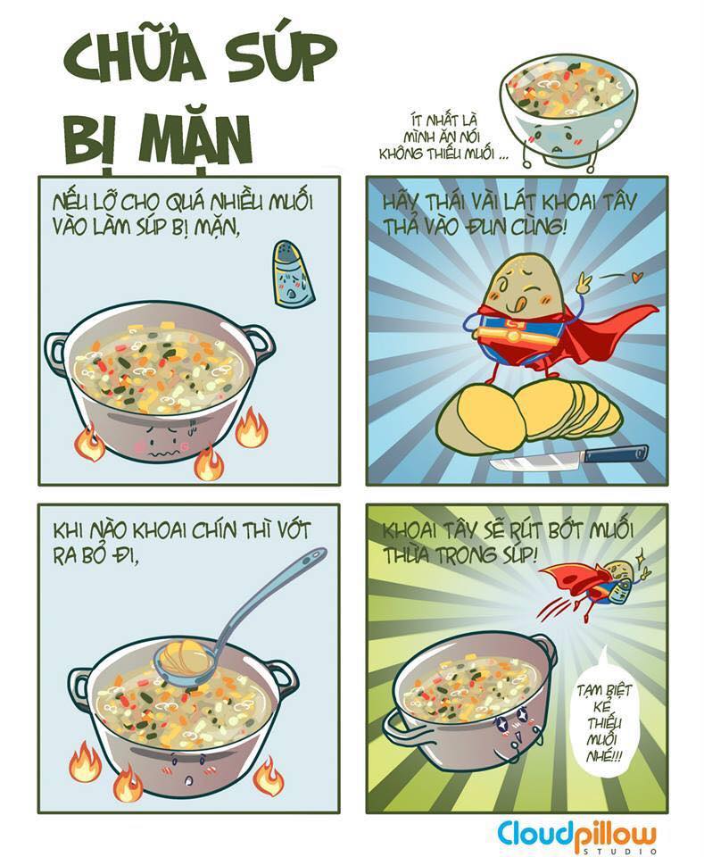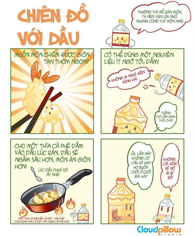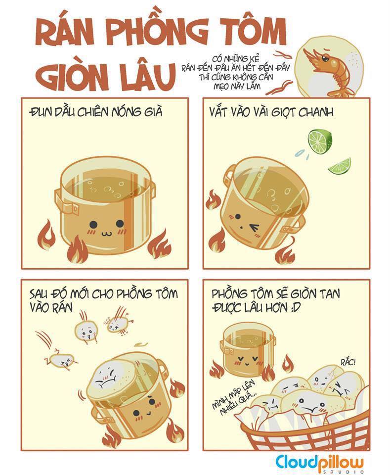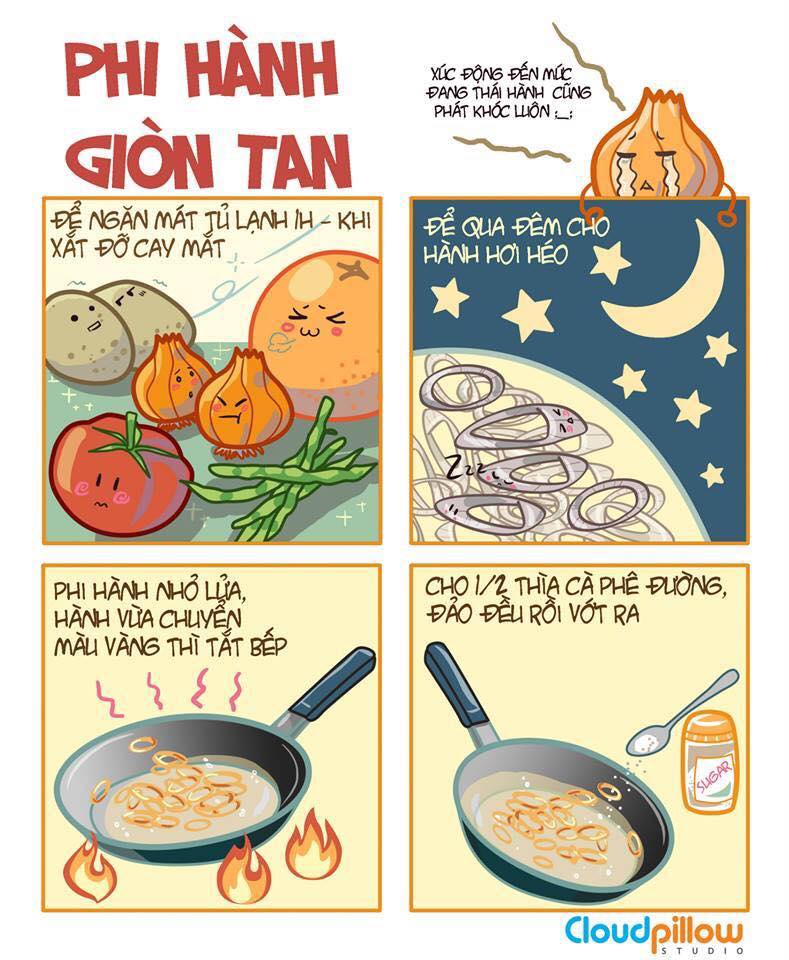 Những mẹo nấu ăn thường ngày tuy vậy nhưng vô cùng hữu ích sẽ được các bếp trưởng chia sẻ lại với các bạn những bí quyết thông qua các bức tranh ngộ nghĩnh của nhóm họa sĩ trẻ Cloud Pillow Studio