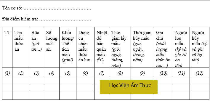 + Mẫu 02: Mẫu biểu theo dõi lưu và hủy mẫu thức ăn lưu