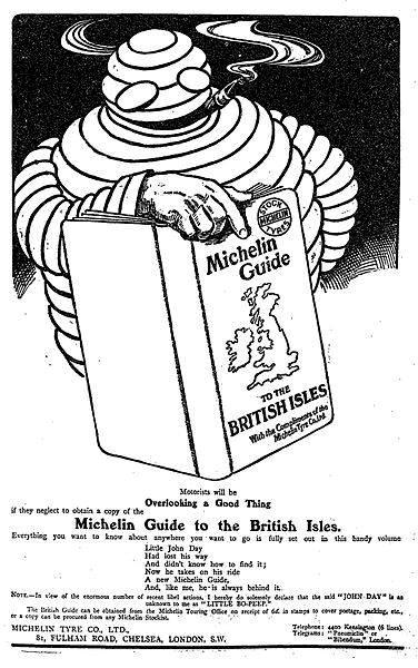 Năm 1900, anh em người Pháp nhà Michelin là André và Édourd đã xuất bản cẩm nang Michelin dành riêng cho giới ô tô Pháp. Thời đó, nước Pháp chỉ có khoảng 3.000 chiếc xe hơi. Cẩm nang ra đời để đẩy mạnh phong trào chơi xe, và dĩ nhiên là để tăng cường tiêu thụ vỏ ô tô, sản phẩm mà công ty Michelin đang sản xuất.